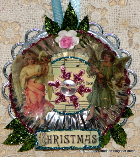 I used the same prima stamp on my tiny punched flower. The Angel is a Gecko Galz image as well as the Christmas Holly. The key is a brad which I just broke off the back and glued on. I inked all my pieces with Ranger's vintage photo distress ink.
