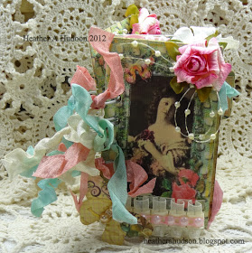 (you will see my stamping and embossing on the inside of my card a little later. I used the Vintage Stained Seam Binding that I purchased from Debbie at the Shabby Tea Room. I just LOVE it!